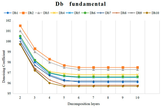 Denoising coefficient of Db wavelet bases under different decomposition layers.