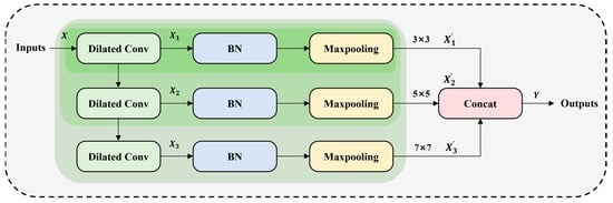 Next, the output of each dilated convolution is subjected to BatchNormal and Maximum Pooling layers to further optimize the feature representation and speed up the computational process. These operations can be represented as: