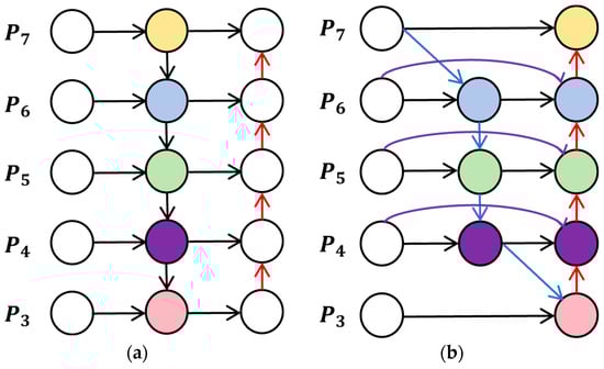 BiFPN is a weighted bidirectional feature pyramid network proposed by Mingxing Tan et al. in EffiicientDet [40]. BiFPN facilitates the flexibility and effectiveness of the information flow of feature maps between different layers by introducing weighted bidirectional connections. Compared to the fusion approach originally adopted by YOLOv8n, BiFPN realizes cross-scale connectivity with the design changes shown in Figure 5.