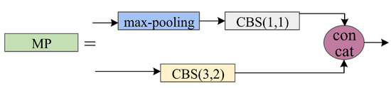 To enhance the detection capabilities and facilitate various feature information exchanges within the model, we implement a cross-level connection strategy, which integrated the backbone feature extraction network of YOLOv7 with the neck feature fusion network of YOLOv7-Tiny-SiLU. We address this by introducing a cross-layer network connection that harmonizes the features extracted by both networks. To preserve texture information as much as possible, we employ a max-pooling operation for feature transfer from the backbone feature extraction network to the neck feature fusion network. This strategy enhances feature integration of the entire network, mitigating performance degradation and loss of object prediction. However, due to the large discrepancy between the feature maps referenced by max-pooling and those extracted by multi-layer convolution, directly performing a concat operation can lead to network learning difficulties. Therefore, a convolutional layer is added after max-pooling and the feature maps are adjusted to reduce the discrepancy. The cross-level aconnection method is illustrated in Figure 5.