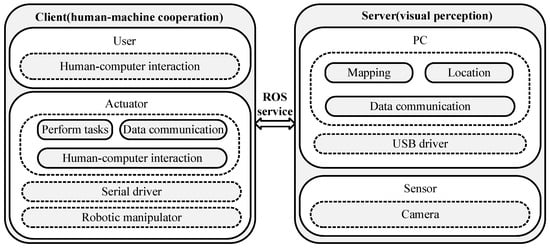 System architecture composed of the visual perception module as the server and the human–computer cooperation module as the client.