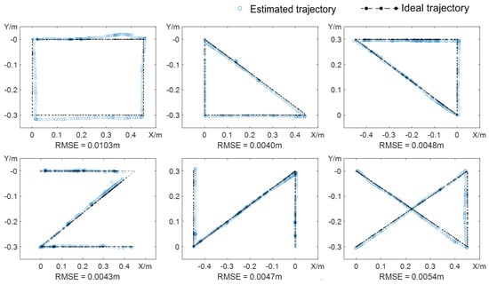 Six different paths are set in the experiment, as shown in Figure 11, to represent the ideal camera trajectories. The accuracy of semantic SLAM camera pose estimation can be qualitatively analyzed by judging the overlap between the estimated camera trajectory and the ideal trajectory.