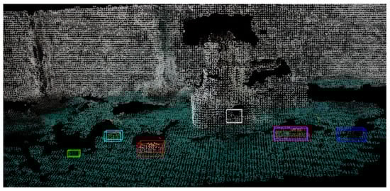By mapping 2D to 3D objects, the final semantic map is built, as shown in Figure 14. The map uses different colored bounding boxes to mark the positions and sizes of the target objects, which can reveal semantic information. This result verifies the feasibility and accuracy of the semantic SLAM algorithm designed in this paper to provide coordinate information for the visually impaired assistive system.