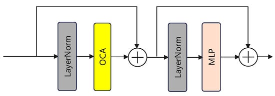 In HAT, the OCAB module is additionally proposed, as shown in Figure 4. Compared to the CAB module, it introduces an overlapping cross-attention layer to establish cross-connections between windows in window self-attention, enhancing the network’s representation ability.