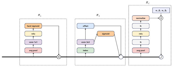 In traditional Feature Pyramid Networks [34], represents the features across all levels of the feature pyramid, where L represents the number of layers, and represent the height, width, and channels. In the Dynamic Head, we define so the tensor in the Feature Pyramid Network is reshaped into . Scale-aware, Spatial-aware, and Task-aware attention mechanisms are incorporated in the Dynamic Head. Their structures are illustrated in Figure 6.