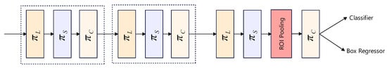 The entire structure of Dynamic Head is shown in Figure 7. It consists of a collection of several attention structure modules, and an ROI Pooling layer [43]. At last, a decoupled detection head is used to output information related to categories and detection boxes separately.