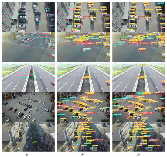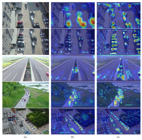 In this paper, we use Grad-CAM [51] technology to visualize features. We chose the C2f layer before the Dynamic Head of Figure 1. This layer integrates features from several smaller scales within the backbone, demonstrating the backbone’s ability to extract features for small objects. In the visualized heatmap, the deeper the color, the greater the contribution to the outcome. As shown in Figure 16, OD-YOLO demonstrates a significant improvement in the capability to derive features from small targets compared to YOLOv8n. These feature extraction capabilities come from the DRmodule’s superior ability to extract small-scale features, and OIoU helps the model better locate the position and shape of the objects.