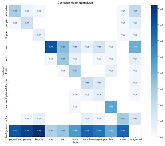 A confusion matrix is a commonly used tool for evaluating classifiers in classification problems. It shows how well the classifier performs by organizing the prediction results into a matrix based on the true and predicted categories. This visually shows how the classifier does with different categories. Figure 14 represents the confusion matrix for YOLOv8n, and Figure 15 represents the confusion matrix for OD-YOLO. In the confusion matrix, the horizontal axis shows the true values, and the vertical axis shows the predicted values. By looking at the confusion matrices of both models, OD-YOLO has higher accuracy and lower error rates for each category, showing that it is better at correctly predicting multiple categories. Compared to YOLOv8n, OD-YOLO has fewer mix-ups and is more accurate in distinguishing samples of different categories. Overall, OD-YOLO’s confusion matrix is better than YOLOv8n’s, with more true positives, lower misclassification rates, higher precision, and fewer cases of mixing up categories.
