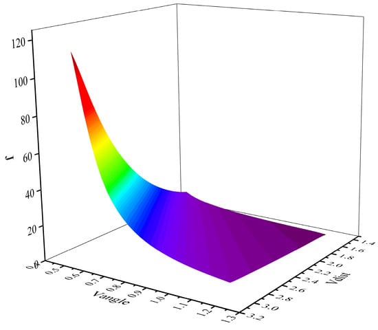 The virtual subgoal benefit function J varies with Vdist and Vangle, as shown in Figure 5. As Vdist increases, Vangle decreases and J increases.