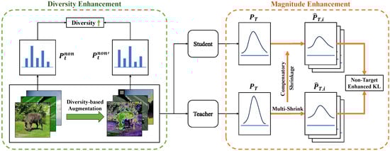 6) aims to align the logarithmic probability of both target and non-target classes between teacher and student. Thus, the model learns to discriminate not only between the correct and incorrect classes but also among various incorrect classes, enhancing the model’s generalization ability when faced with unseen or difficult data.