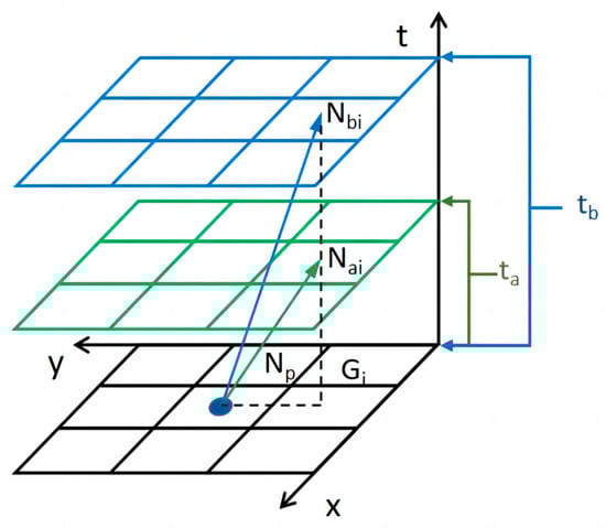 When constructing known conditions, the first step is to construct the spatiotemporal grid map. The traditional two-dimensional XY grid map can only represent spatial information and cannot directly cover the time dimension, so it is necessary to reconstruct the map by adding the time T-dimension information as the third dimension to construct the X-Y-T three-dimensional spatiotemporal grid map [].