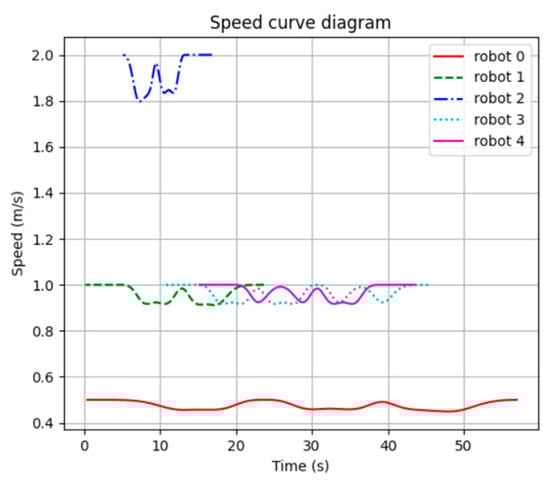 The next step in constructing the known conditions requires the calculation of the variable time step of the robots. The traditional algorithm’s time node expansion method is based on an immutable time step for expansion, and it is difficult to express different speed states for the immutable time step, which cannot easily be applied to scenarios involving multiple robots running at different speeds [].