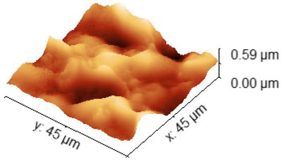 In the quartz dual-delay line configurations covered by the polymer films, the observed decreasing frequency shifts of the thinner layers were also characteristic for the mass effect. The relatively heavy water molecules were imbibed in the absorption centers of the porous rr-P3HT polymer film with profile roughness Ra ~76 nm and RMS ~94 nm estimated on the base of AFM measurement (Figure 4).