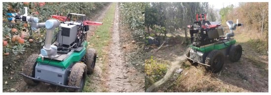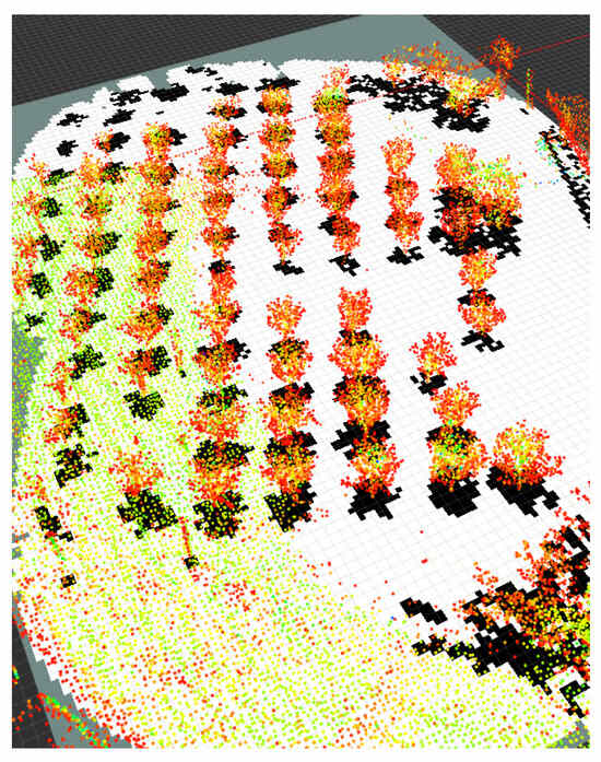 Semantic information [7] plays a crucial role in SLAM systems. This is specifically reflected in the environment modeling, positioning and navigation of robots, as well as improving the robustness and accuracy of robot environment perception by fusing semantic information with sensor data [8]. A multi-sensor-based navigation solution is proposed to enable the robot to perform effective path planning and navigation by integrating landmarks and obstacle information that need to be identified in the environment into a semantic map. Cheng Peng et al. [9] proposed an end detection method for robots to realize autonomous navigation and obstacle avoidance in orchards without GNSS signals, which used the drastic changes in the statistical distribution of points sensed by the depth camera at the end of the robot, based on the real-time perception and response of the robot to the surrounding environment, combined with the semantic map, and further improved the navigation accuracy and safety of the robot in the orchard. In response to the needs of orchard spraying operations, Zhou, Xinzhao et al. [10] constructed an environmental perception and map construction strategy based on three-dimensional LiDAR in the complex environment of the orchard, based on the three modules of “perception–decision–control” of the unmanned system, and implemented it under different working conditions. The obstacle avoidance performance and navigation accuracy of the autonomous navigation spray vehicle were verified, and the feasibility of the developed system was verified. Li, Zhiqiang et al. [11] aimed at the problem of loss of navigation information obtained by plant protection robots under traditional visual navigation methods. They proposed using LiDAR point cloud data to supplement machine vision, and based on the characteristics of the actual environment, use point cloud data to identify obstacles between rows and columns of objects, obtain auxiliary navigation information, and provide guarantees for the stable operation of robots in colleges and universities. Denis F. Wolf et al. [12] combined robot learning techniques with standard mapping algorithms to develop maps that represent environments and navigability. At this stage, robots capable of precise environmental recognition, robust and flexible motion, and accurate plant modeling remain an area for exploration.