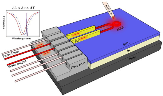 - Vasiliev, A.; Malik, A.; Muneeb, M.; Kuyken, B.; Baets, R.; Roelkens, G. On-Chip Mid-Infrared Photothermal Spectroscopy Using Suspended Silicon-on-Insulator Microring Resonators. ACS Sens. 2016, 1, 1301–1307. [Google Scholar] [CrossRef]