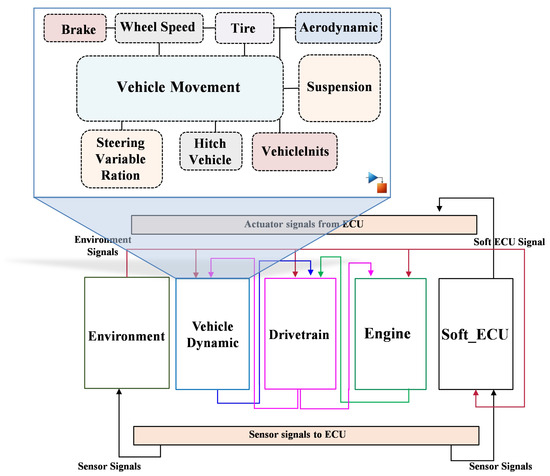 - Safar, M.; El-Moursy, M.A.; Abdelsalam, M.; Bakr, A.; Khalil, K.; Salem, A. Virtual verification and validation of automotive system. J. Circuits Syst. Comput. 2019, 28, 1950071. [Google Scholar] [CrossRef]
