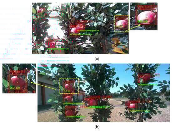 Moreover, the apples that were covered by branches and poles failed to obtain accurate localization results. The laser pointed only to the center positions of the apples detected by the EfficientDet detection network. Thus, we found that the integrated system and 3D camera localization coordinates were more accurate when the target was near the center of the camera frame because of the laser beam divergence angle. If robotic systems can only focus on harvesting apples detected in the center of the camera frame, the accuracy of harvesting can increase. Accurate geometrics of the target locations help the robotic systems to achieve proper grasping sequences while avoiding misleading robotic cycles and obstacles.
