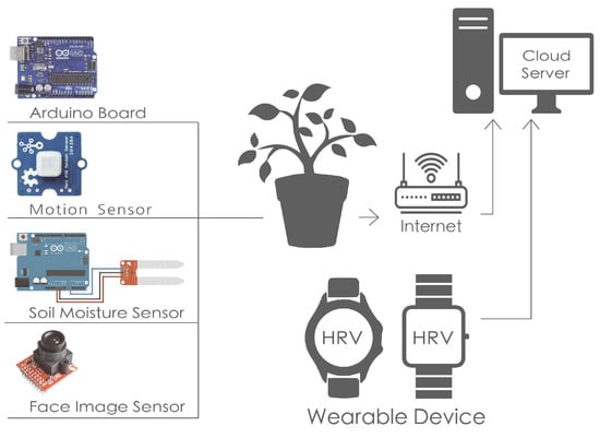 51]. Smart home technologies based on the Internet of Things (IoT) connect everyday objects, which is the basis of connectivity in the slow sensor model. Plants equipped with IoT and sensor networks will be closely related to the lives of patients in research. Sensors placed on the plants send signals according to the activity time of the patient’s treatment sessions. The sensors expected to be used are miniature motion sensors, soil moisture sensors, and face image sensors [