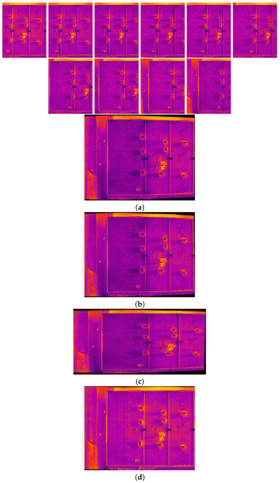 Image stitching for dual-sensor inspection takes infrastructure inspection to a higher level of accuracy and insight []. In different modalities, such as IR and VIS bands, the stitched images enable a more comprehensive understanding of the entire structure [].