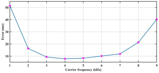 The displacement reconstruction error of different carrier frequencies.
