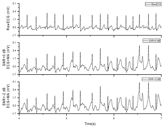 - Tong, D.A.; Bartels, K.A.; Honeyager, K.S. Adaptive reduction of motion artifact in the electrocardiogram. In Proceedings of the Second Joint 24th Annual Conference and the Annual Fall Meeting of the Biomedical Engineering Society] [Engineering in Medicine and Biology, Houston, TX, USA, 23–26 October 2002; Volume 2, pp. 1403–1404. [Google Scholar] [CrossRef]