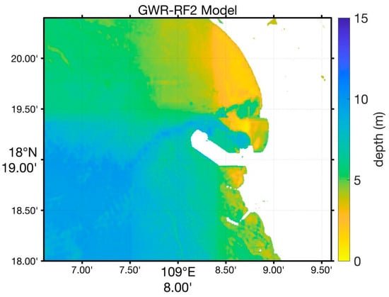 - Depth Inversion: The trained GWR-RF-Lat./Lon model is used to predict water depths across the study area. The predictions are evaluated against in situ measurements to assess the model’s accuracy.