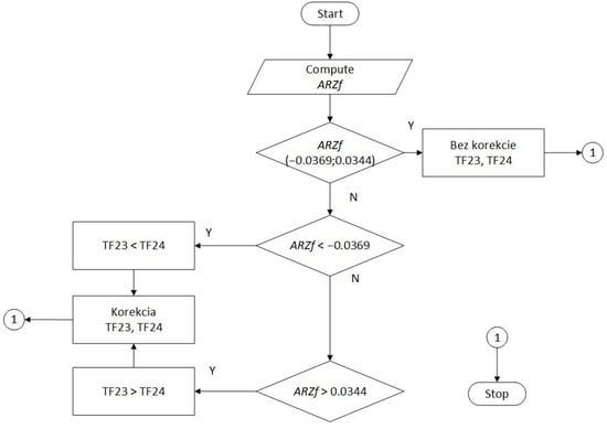 Since the safe limit of set asymmetry was not determined in advance, the limit of set asymmetry ±1000 N was chosen. It was the set difference between TF23 and TF24 in positions ID23 and ID24. Based on the calculated value of AsymRatioZero, a safe asymmetry interval was estimated. Then, the classification in Table 5 evaluated whether the empirical values of AsymRatioZero, for which the crossing of a safe asymmetry limit was classified, corresponded to the classifications based on the ARZf variable’s theoretical values on exceeding the safe limit of asymmetry.