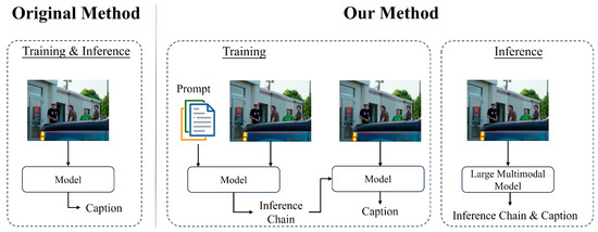 Compared to the original method, our model generates captions with the addition of inference chain.