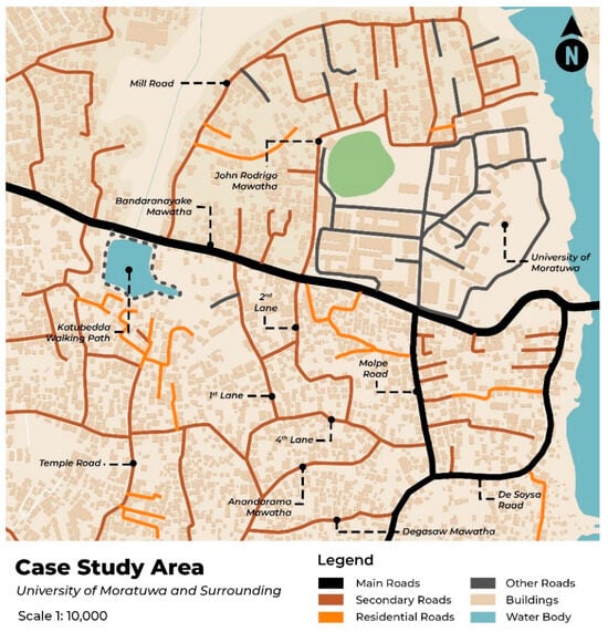 We developed an approach for mapping pedestrian walking behavior on the streets of the University of Moratuwa and its vicinity. Campus walking areas are prioritized in urban sustainable development and developing pedestrian-friendly surroundings [2]. Given the nature of the experiment, this study examined walking behavior at the University of Moratuwa and its surrounds, as shown in Figure 1. The case study includes public locations, residential neighborhoods, cultural and commercial areas, and diverse university spaces to evaluate walking behavior patterns in varied environments and situations. Pedestrian traffic was seen in these areas, as many individuals were walking around the university because university students choose different routes daily to get to the university.