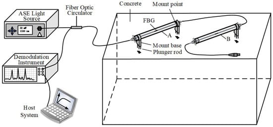 As shown in Figure 8, is the Bragg wavelength shift of sensor A, is the Bragg wavelength shift of sensor B, , and can be described as: