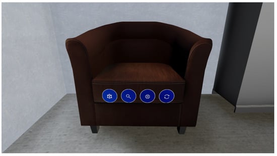 Once the instance segmentation is carried out, it is required to automatically and precisely replace the instances of the different objects in the 3D scene with CAD models in the same position, orientation, and scale as real-world objects. This process is performed to be able to modify the shape, appearance, and spatial location of the elements in the scene later using our GUI while reducing the polygonal load of the scene. To do so, VET incorporated the recent method proposed by Ainetter et al. [17] known as ScanNotate, which replaces the objects detected in the scene with semantically and geometrically similar CAD models. ScanNotate first estimates the 7 DoF pose of the objects; then, it retrieves the closest matching CAD by comparing the labeled object with the CAD models of the same class. In addition, this method joins objects of the same class into clusters to assign the same CAD to all the objects in one cluster if they are similar enough and, finally, it applies a refinement step to make the results more precise.