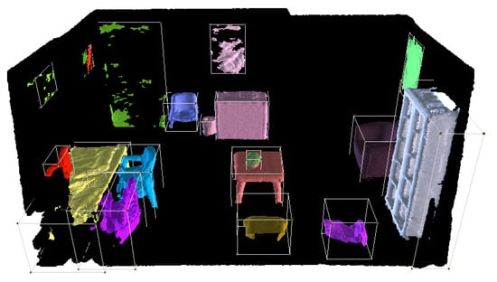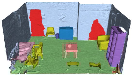 - Dai, A.; Chang, A.X.; Savva, M.; Halber, M.; Funkhouser, T.; Nießner, M. Scannet: Richly-annotated 3D reconstructions of indoor scenes. In Proceedings of the IEEE Conference on Computer Vision and Pattern Recognition, Honolulu, HI, USA, 21–26 July 2017; pp. 5828–5839. [Google Scholar]