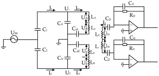In the context of our research initiatives, it is imperative to address the amplification of front-end noise by subsequent amplification circuitry. Consequently, the attenuation of noise within the front-end resonance capacitor bridge circuit assumes critical importance. The current research results indicate that the primary factors contributing to the noise signature are encapsulated in Equation (1), which provides a quantitative representation of these influences [1].