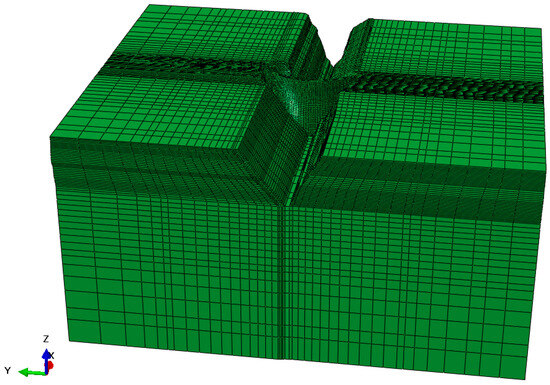 To validate the accuracy and effectiveness of the proposed ARS method for the modal parameter recursive estimation of arch dams, a numerical simulation of a concrete arch dam under seismic loading was conducted by using the finite element analysis software ABAQUS. The concrete arch dam serves to generate and prevent floods, with a normal reservoir level set at 1880 m. The dam crest elevation and the lowest dam foundation elevation are 1885.0 m and 1580.0 m, respectively. The maximum dam height, dam crest width, and dam bottom thickness are 305.0 m, 16.0 m, and 63.0 m, respectively. Upon calculation, it was determined that extending the model 3.0 times the dam height in the upstream, downstream, left, right, and foundation directions met the precision requirements. Figure 2 shows the finite element model of the arch dam. The numerical simulation was simplified, but transverse joints were not considered. Meshing was performed using the eight-node hexahedron C3D8R and six-node pentahedron elements, resulting in a total of 142,316 nodes and 132,160 elements, with 4696 elements in the dam body.