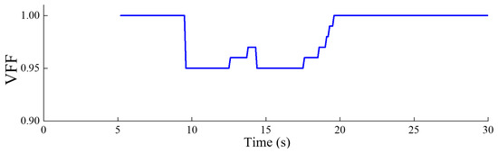The selection of forgetting factors at each moment should be determined based on the specific changes in structural parameters. When structural parameters undergo minimal changes, opting for a larger forgetting factor is recommended to mitigate the decay rate of historical data weights. Conversely, in the case of significant structural parameter variations, selecting a smaller forgetting factor is advisable for amplifying the decay rate of historical data weights. This ensures that the current input–output data carry greater weight, thereby enhancing the tracking accuracy of the identification algorithm for time-varying structural parameters.