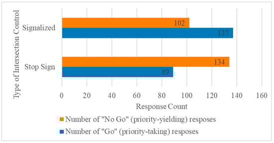 TPR was greater than TNR across all models. In other words, the models were better able to correctly predict “no go” responses than “go” responses. The ability to correctly predict human drivers’ yielding behaviour provides an opportunity for Avs to take priority more often at sign-controlled intersections when they may have otherwise waited for traffic to clear before proceeding [48]. This can reduce the likelihood of rear-end collisions with human drivers who expect more aggressive, priority-taking behaviour [6,48].