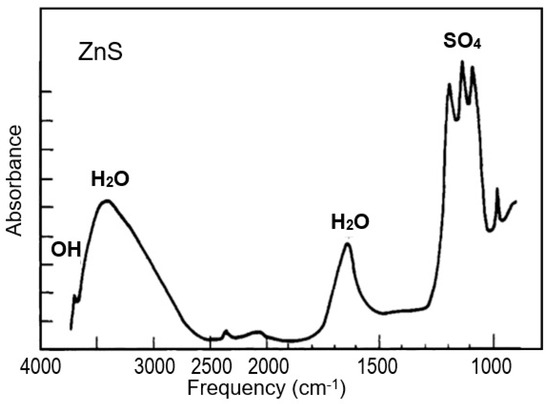 Fourier-transform infrared spectroscopy (FTIR) spectrum of ZnS powders. Adapted with permission from [31]. Copyright 1988: ACS.