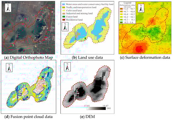 Based on low-altitude UAV remote sensing monitoring, the refined structural information of natural resources can be obtained. UAV LiDAR technology is a combination of the advantages of UAVs and LiDAR. It can flexibly take off and land, fly at low altitudes and quickly obtain data, which can also obtain surface information through vegetation without special geographical restrictions, and then obtain high-precision three-dimensional coordinate data in real time [32,33]. UAV LiDAR measurement can obtain high-precision DEM data within the subsidence area, building height, water boundary elevation information, etc. Multi-period high-precision DEM can monitor settlement changes in the subsidence area and build a visualization model of the subsidence area. Point cloud data density should be sufficient to interpolate digital elevation model data.