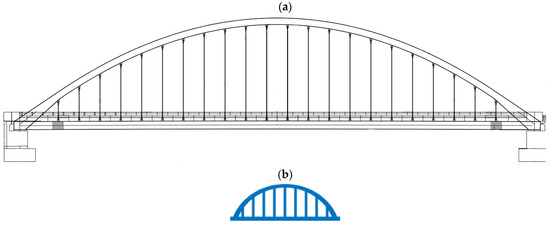 This section will briefly describe the UK bridges used in this study. To examine the robustness of the proposed MID approach when choosing the bridges for this study, a mixture of different span lengths, span numbers, and construction types was desired. The four bridges chosen have span lengths ranging from 8.9 to 98 m with span numbers ranging from 1 to 3. This represents a good sample of the common span lengths encountered on short- and medium-span bridges. The construction type/material of these bridges also varied as the sample includes a steel bridge, reinforced concrete bridges, and a steel–concrete composite bridge. One bridge, a 98 m steel tied-arch structure, was chosen so that a bridge toward the upper end of the short and medium bridge span range was included.