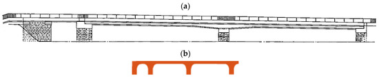 (a) Elevation drawing of Bridge 2. (b) Icon representing Bridge 2.