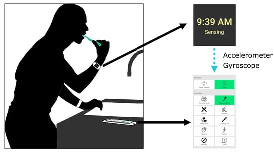 - Cherian, J.; Rajanna, V.; Goldberg, D.; Hammond, T. Did You Remember to Brush? A Noninvasive Wearable Approach to Recognizing Brushing Teeth for Elderly Care. In Proceedings of the PervasiveHealth ’17: 11th EAI International Conference on Pervasive Computing Technologies for Healthcare, Barcelona, Spain, 23–26 May 2017; pp. 48–57. [Google Scholar] [CrossRef]