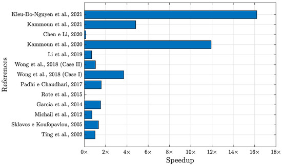 Table 4 shows a comparison of the energy saving ratios, according to Equation (35), between the results of this work (implementations for core and cores) and all references in the cited literature (described in Section 2). The last two columns express the comparison between the implementation proposed here for one core and for sixteen cores in relation to the saving dynamic power (Sd).