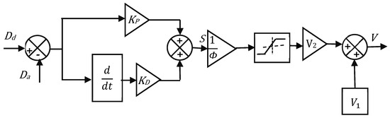 The objective requirement of the control system for an optimum response is an appropriate switching function design. Hence, the switching condition S is designed as the summation of both the weighted position error and the weighted velocity error, and it is named as the proportional derivative combined variable structure controller (PD-VSC). The block diagram of the control scheme is shown in Figure 11.