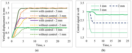 Performance comparison of the open-loop and closed-loop using self-sensing PD-VSC. (a) Vertical displacement. (b) Control voltage.