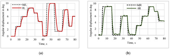 Tracking performance of θ manipulation (θ-Left) with multistep inputs. (a) Left angle displacement. (b) Right angle displacement.