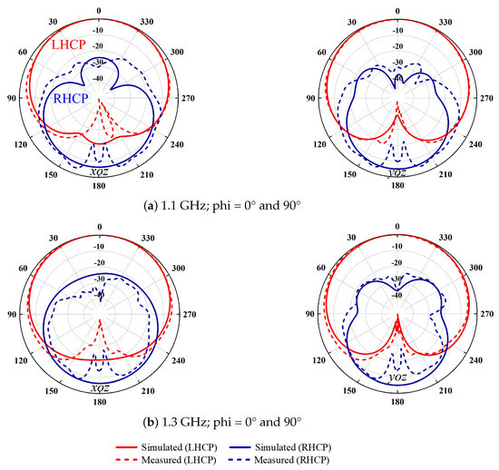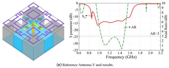 - Ta, S.X.; Choo, H.; Park, I.; Ziolkowski, R.W. Multi-Band, Wide-Beam, Circularly Polarized, Crossed, Asy mmetrically Barbed Dipole Antennas for GPS Applications. IEEE Trans. Antennas Propag. 2013, 61, 5771–5775. [Google Scholar] [CrossRef]