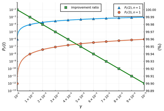 The figure indicates that, as the number of nodes increases from 2 to 3 in a cluster, drops significantly, i.e., the improvement is . Also, if the expected life of a node of the server is about one year, then the sever almost never fails (i.e., ) if we can repair a failed node within 9 h (i.e., ).