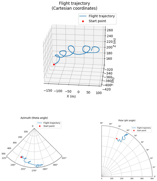 The test data used for feature extraction originate from the BPS system. By processing this data, birds’ flight trajectories can be defined. An example of flight trajectory in Cartesian and spherical co-ordinate systems is presented in Figure 2.