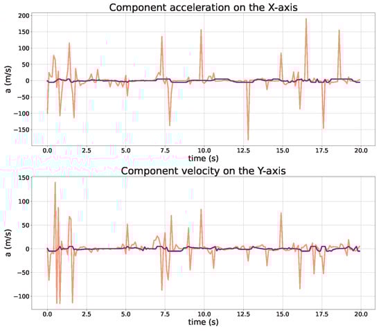 Comparisons of UAV acceleration (actual: purple, desired: red).