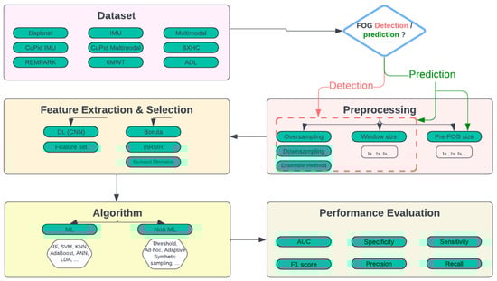 In recent years, machine learning (ML) and wearable sensor technologies have emerged as promising tools for the early detection and prediction of FOG episodes. By using the power of ML algorithms and the continuous monitoring capabilities of wearable devices, researchers have begun to develop systems capable of recognizing the precursors to FOG events, offering potential for real-time intervention and support. These advances hold the promise of transforming the management of FOG, enabling patients to engage in preemptive actions that may reduce the incidence or severity of freezing episodes, thereby enhancing mobility and autonomy [31,34,35,36].